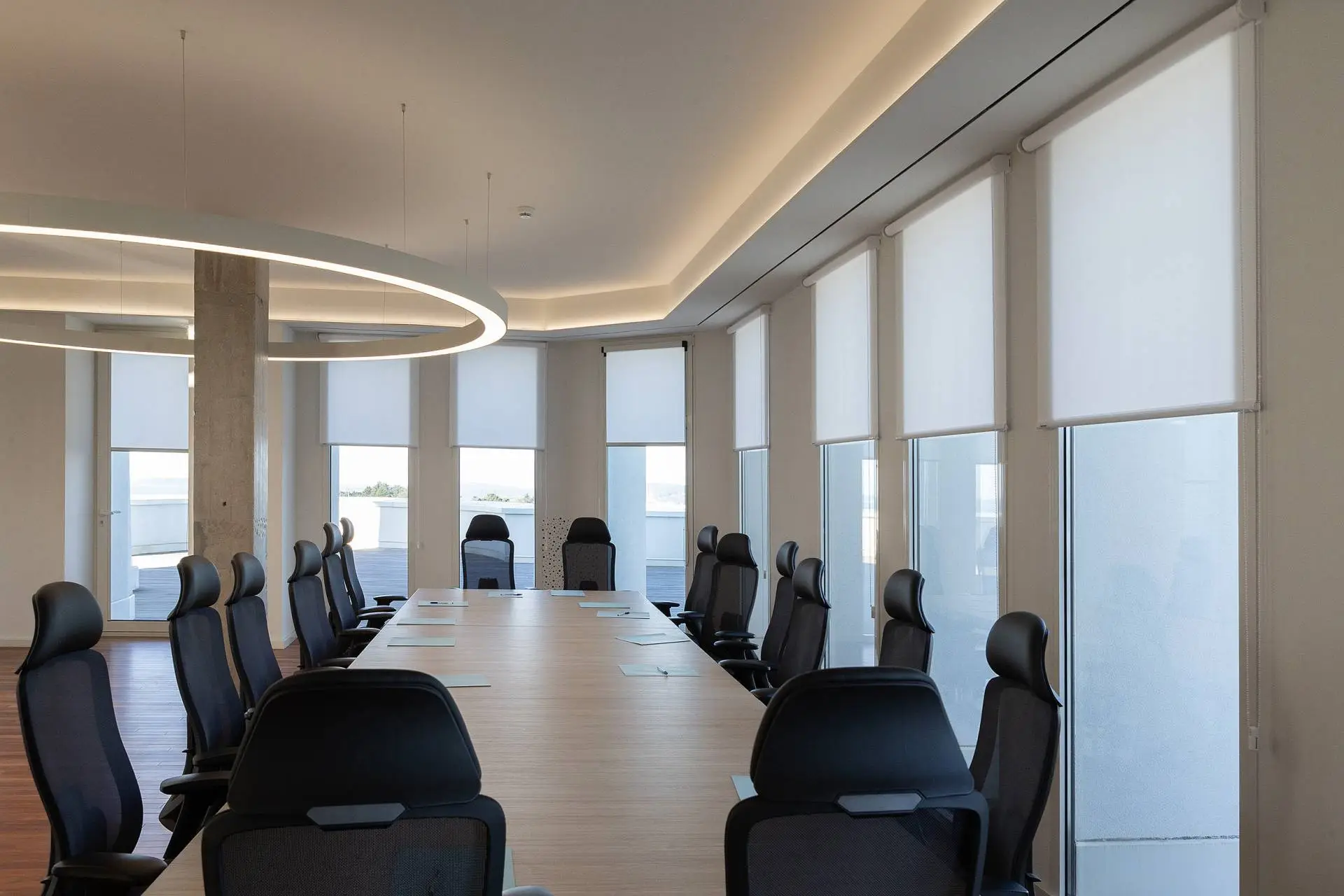 Compact design with a completely flat cover that gives the shade a visually lightweight appearance.