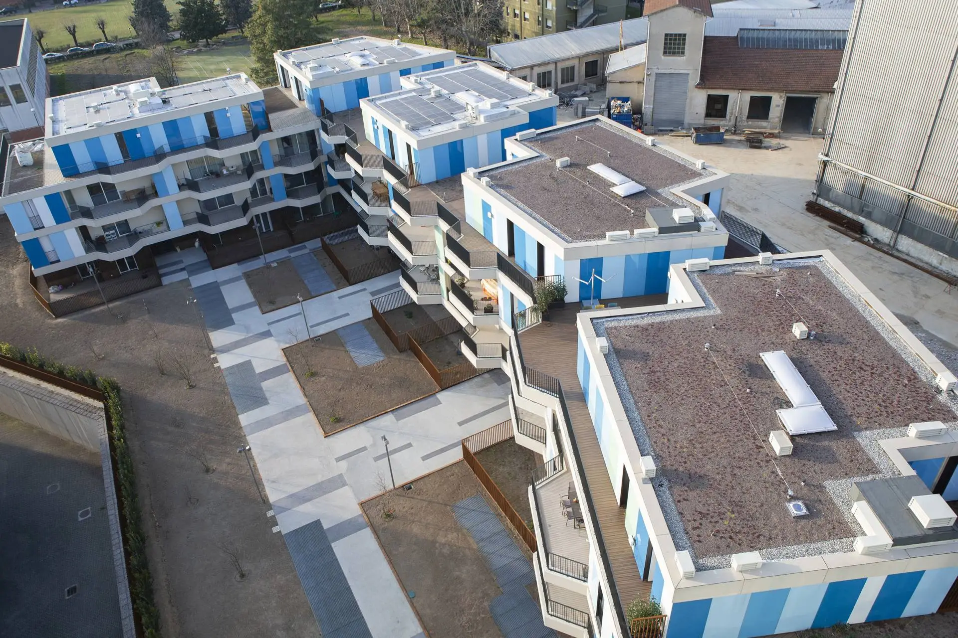 El proyecto acoge 110 viviendas en tres tipos de edificios diferentes unidos por varias zonas ajardinadas; y diversas áreas comunes.